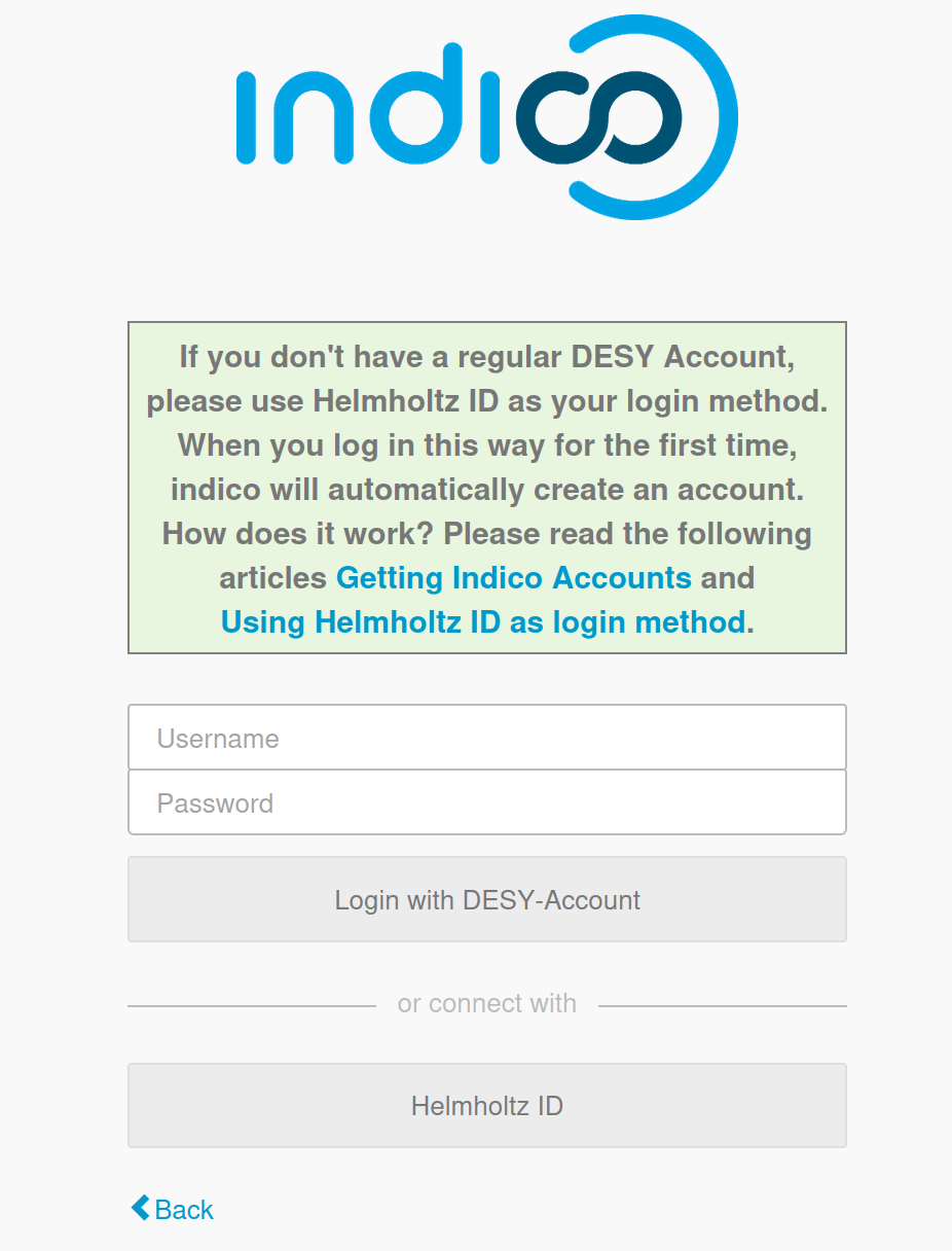 - Mit der nächsten Indico Version ist eine Anmeldung am System mit DESY-Account